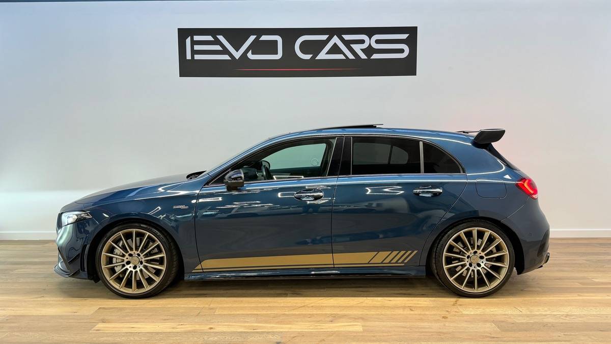 Nous avons eu en exclusivité dans notre espace de vente premium à Villefranche sur Saône, cette magnifique Mercedes-Benz Classe A 35 AMG Edition 1. Ce modèle a spécialement été commercialisée dans son coloris Bleu Denim métallisé en mettant l'accent sur les éléments dorés "Tech Gold Matt" que portent les jantes en 19 pouces et autres éléments esthétiques.